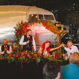 Ever wondered what happens when you hire an airport hangar, decorate it in leopard print and ask all your friends to bring their classic 50s cars for a DIY wedding unlike any other?